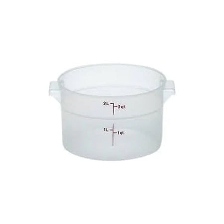 Effortlessly store and transport food with this Cambro Translucent 2 Quart Round Storage Container. Made of durable polyproylene, it's perfect for commercial or home use and can withstand extreme temperatures. The stain-resistant design and easy-to-read measurements make it a must-have for any kitchen. Stackable and dishwasher safe. Covers sold separately.