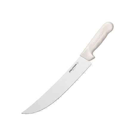 Upgrade your cutting game with the Russell S132-10PCP 10" cimeter steak knife. Its textured, temperature-resistant handle ensures a secure grip, while Sani-Safe technology keeps it clean and germ-free. Made of high carbon, stain-free steel, this knife is designed to last. Perfect for any cutting occasion.