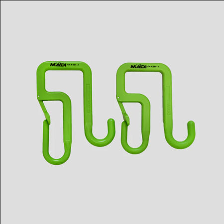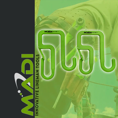 MADI hooks have an exclusive integrated safety gate that prevents unintentional accessory falls, and an extra wide paddle gate for opening with rubber gloves. Features up to 150 lb. working load limit (WLL) for high strength and reliability.