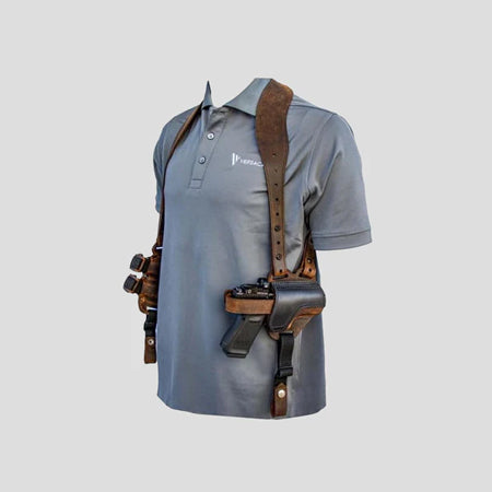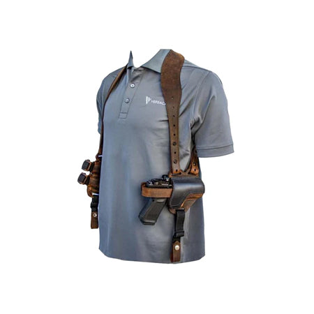 Expertly designed for ultimate comfort and versatility, the Versacarry SH22 Shoulder Holster with Double Mag Pouch is perfect for carrying most gun sizes. Its adjustable design allows for a customizable fit, while the added pouch provides easy access to extra ammunition. Dominate any situation with ease and flexibility.
