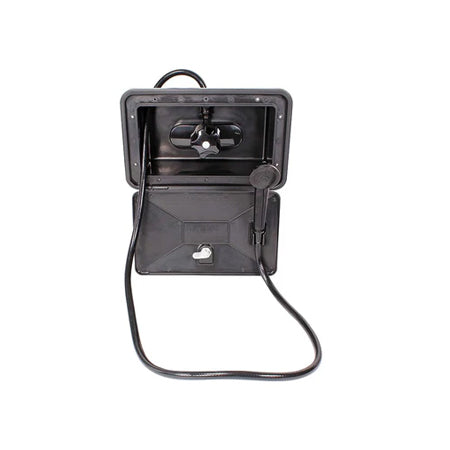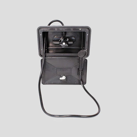 - Constructed with black plastic that resists wear and tear, this RV Exterior Shower Box Kit boasts metal fittings that ensure no leakage. It features a built-in vacuum breaker that provides clean water each and every time. Tested in the USA and compliant with ADA, UPC, and CUPC standards, it is suitable for a variety of RV brands, including Forest River, Jayco, Winnebago, and more.