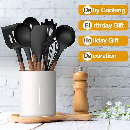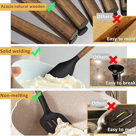 - Expert Tip: For a durable and long-lasting kitchen utensil set, choose one with HIGH QUALITY NATURAL Acacia WOODEN HANDLES. These handles are made from durable hardwood and can last up to 40 years when properly cared for. Remember to not soak them in water for extended periods of time, use a dishwasher, or use a sharp brush to clean them. Instead, gently hand clean with water or wipe with a soft cloth. Always dry thoroughly before storing.