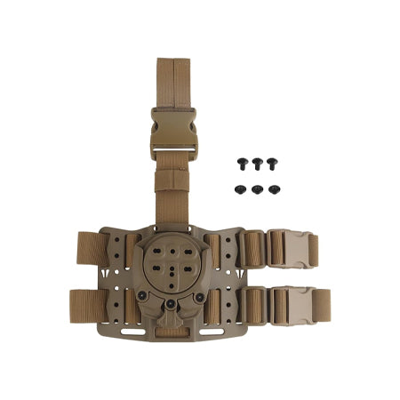 The Tactical Leg Panel Adapter offers versatile attachment options with its belt clip holster adapter and fully adjustable 360° cant. Designed for secure and customizable carry, it features a durable loop strap and a plastic buckle leg strap to ensure stability and comfort during extended use. Ideal for professionals seeking reliable gear adaptability on the move.