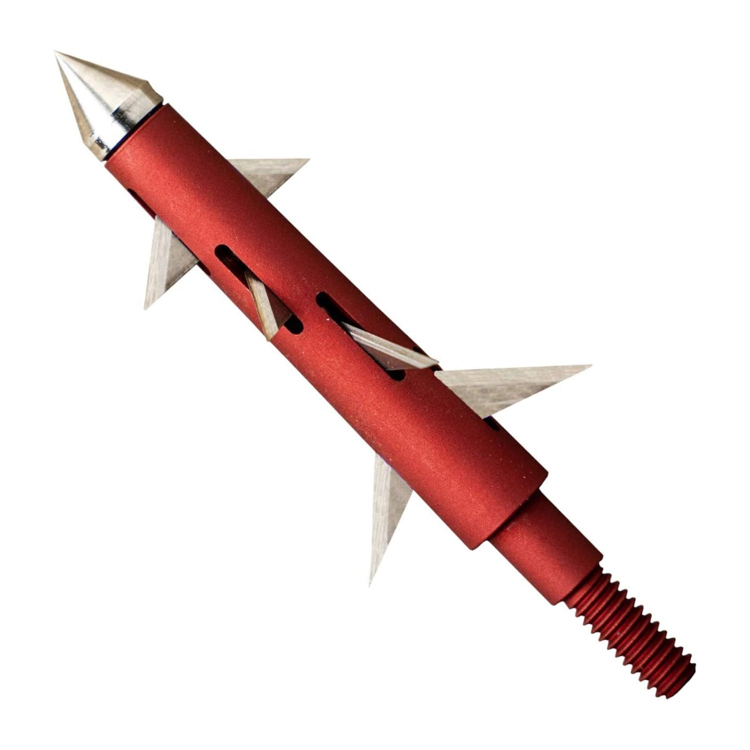 “The Crown of Thorns” is the new king of fixed blade Broadheads. With blades starting at the top at 5/8”, followed by a 3/4”, followed by a 7/8”, and having a 1” blade at the bottom. Don’t be fooled by the 1” cut diameter. The Crown features eight helix stacked cutting blades, providing 3.25” of cutting surface and leaving devastating wound channels that stay open. The Crown is constructed with a rugged 70/75 aircraft aluminum frame topped by a solid titanium threaded tip and replaceable 0.040-thick 420 stainless steel blades.