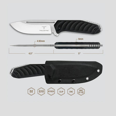 Expertly crafted with a D2 drop point blade, G10 handle, and kydex sheath, this tactical knife is a versatile tool for any outdoor adventure. Its compact size and molle clip make it perfect for camping, hunting, and everyday carry, while the sturdy construction ensures durability for all your survival needs.
