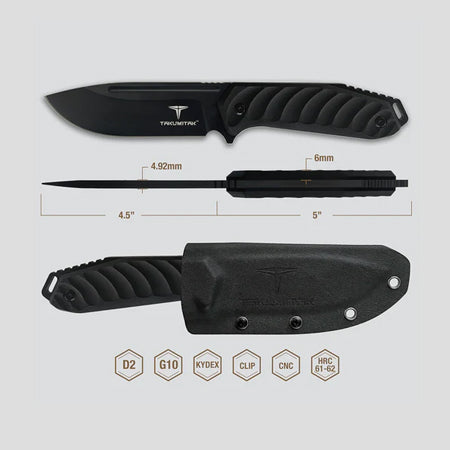 The Tactical Knife Hunting Knife Survival Knife is the perfect companion for all your outdoor adventures. With a D2 drop point blade and G10 handle, this knife offers durability and precision. It comes with a Kydex sheath and Molle clip for easy carrying and the perfect addition to your camping or survival gear. Trust in its superior quality and reliability on any EDC or hunting trip.