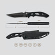 - - Each blade in our Camping Gear Survival Kit features a full tang 5 inch drop point blade that has been professionally heat treated to ensure a balanced level of hardness and toughness. This results in a durable and capable blade that can outperform softer blades. Without a proper balance of hardness and toughness, knives are vulnerable to chipping, cracking, and breaking. We prioritize this balance through the heat treatment process for every blade in our kit.