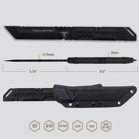 As a versatile survival tool, this knife features a sharp D2 Tanto blade to tackle any situation with ease. The G10 handle provides a secure and comfortable grip, while the Kydex sheath and Molle clip offer convenient carrying options. Perfect for camping, hunting, and everyday use.