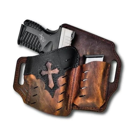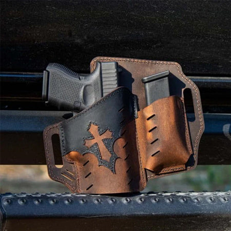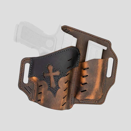 The Versacarry Guardian Holster in Arc Angel Design is the perfect blend of style and functionality. Its sleek design and durable construction make it a must-have for any gun owner. With its secure fit and quick draw release, you can have peace of mind knowing your weapon is always within reach. Expertly crafted to provide optimal comfort and protection, this holster is a must-have for any gun enthusiast.