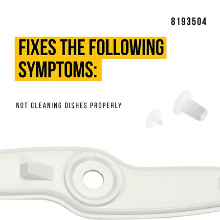 - Quick DIY repair - 8193504 Dishwasher Spray Arm will help if your appliance is not cleaning dishes properly. Wear work gloves to protect your hands during the repair process.