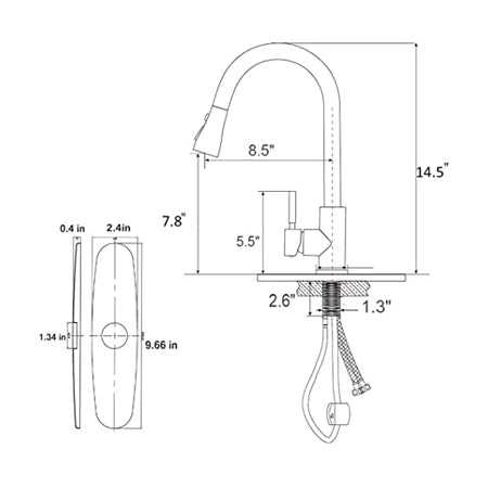 - DIMENSION: Overall Height: 14.5'' Spout Height: 7.8'' Spout Reach: 8.5'' High-arc spout can swivels 360 Degrees,1 Or 3-hole optional installation (included deck plate).