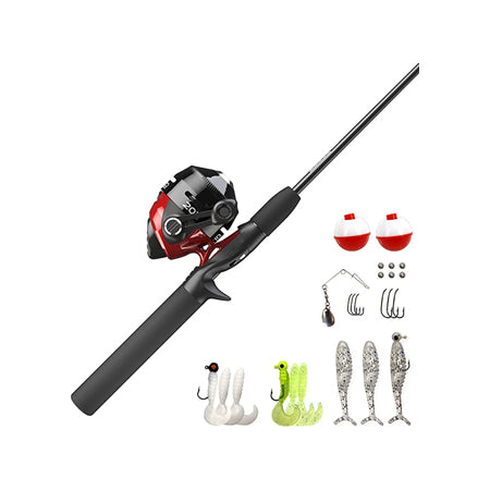 - EASY-TO-USE: The famous Zebco 202 spincast combo features a 5-foot 6-inch 2-piece fishing pole, size 30 fishing reel and 27-piece tackle kit. You will be ready to hit the water with the patented no-tangle design and simple push-button mechanics for ease of use making this reel great for both beginners and experienced anglers